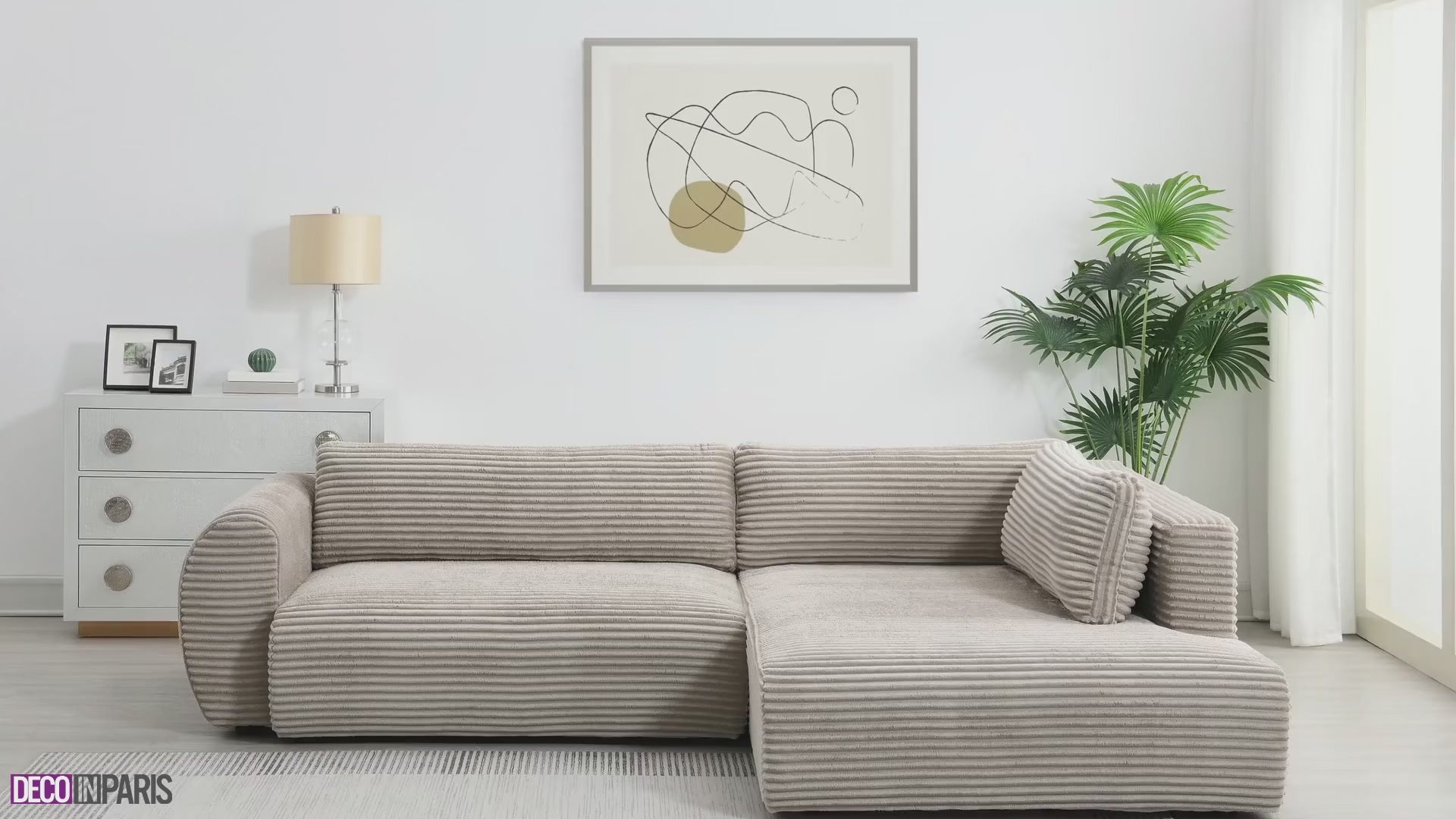 Möchten Sie Ihrem Zuhause eine gemütliche und zugleich elegante Atmosphäre verleihen? Verlieben Sie sich in das taupefarbene Cord-Ecksofa TILDA mit Chaiselongue.