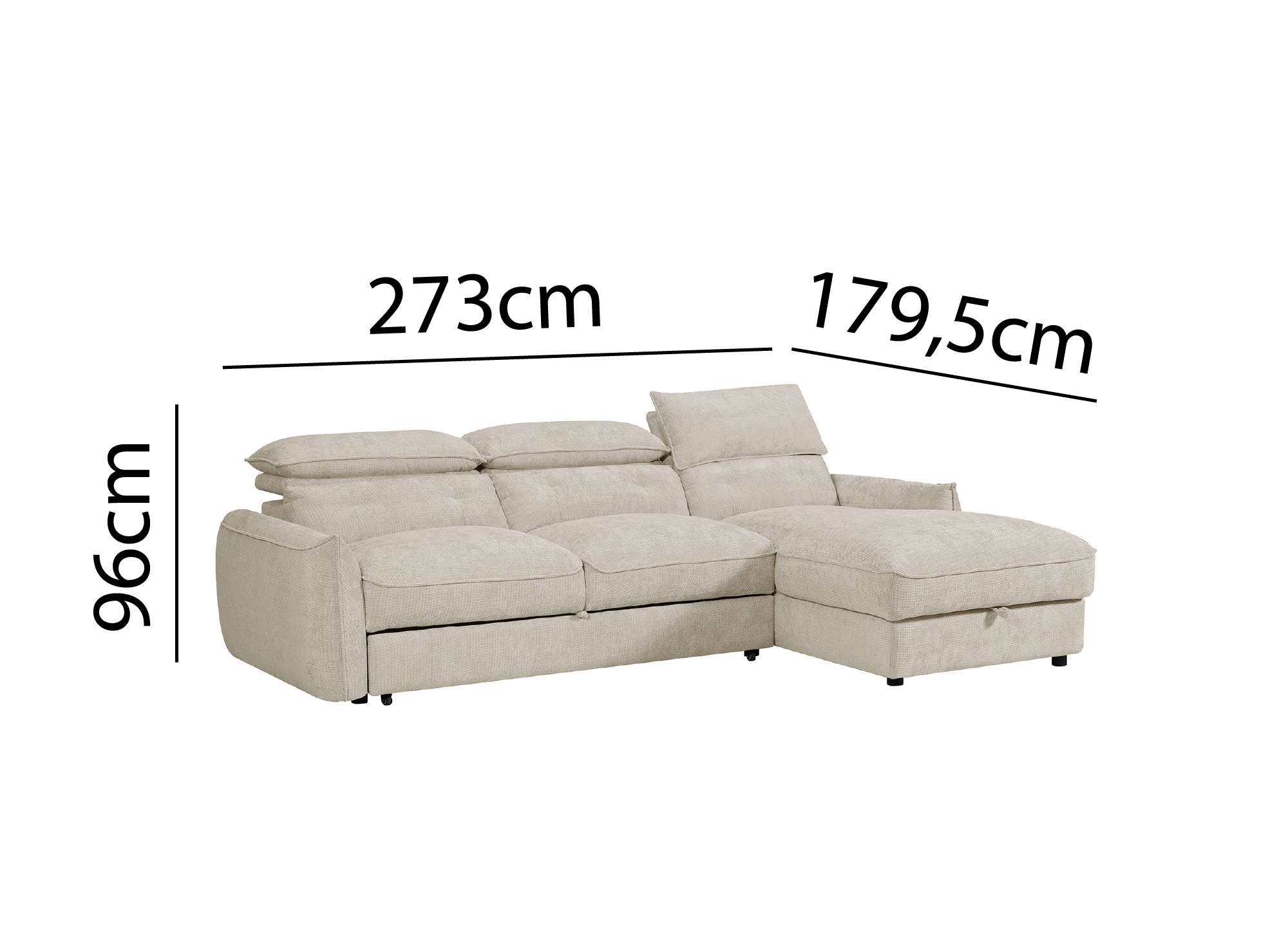 Dieses praktische und funktionale Sofa lässt sich dank seines einfach zu bedienenden Mechanismus im Handumdrehen in ein Bett verwandeln. Die Chaiselongue mit integriertem Staufach eignet sich ideal zum Verstauen von Bettdecken, Kissen, Überwürfen oder Bettwäsche.