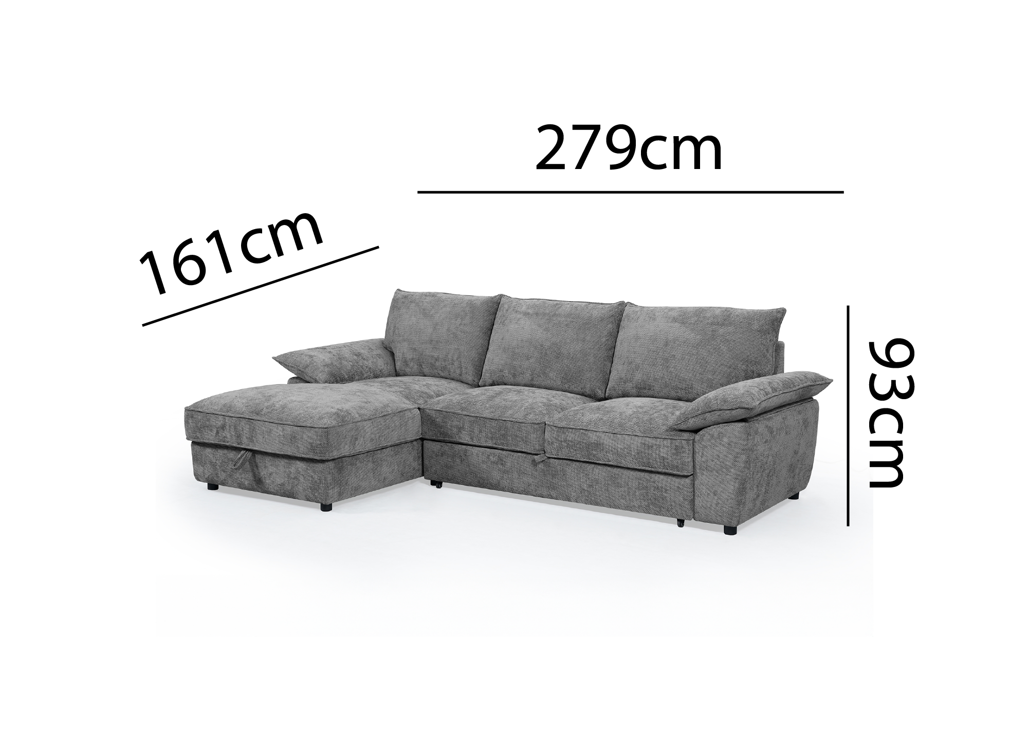 Der melierte Samt fühlt sich nicht nur weich an, sondern ist auch strapazierfähig und pflegeleicht. Die weichen Kissen sorgen für optimalen Komfort beim Entspannen und Schlafen. Dieses Schlafsofa mit Stauraum ist die perfekte Lösung für alle, die Wert auf Stil, Funktionalität und Platzersparnis legen und gleichzeitig ihrem Zuhause einen Hauch von Eleganz verleihen möchten.