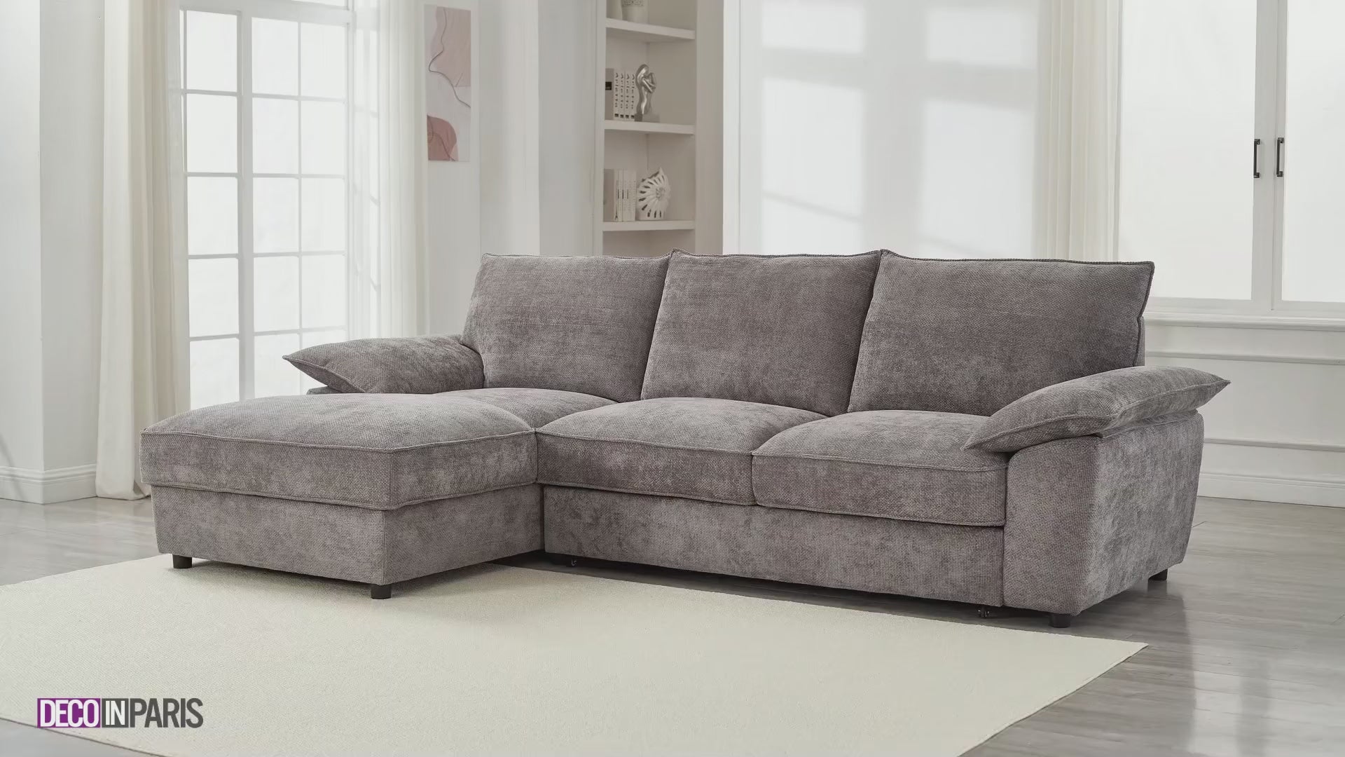 GABIN Ecksofa aus grau meliertem Samt mit Aufbewahrungsbox - Linke Ecke