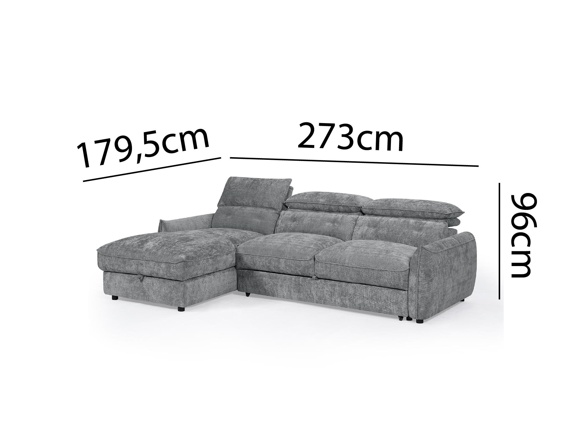 Dieses praktische und funktionale Sofa lässt sich dank seines einfach zu bedienenden Mechanismus im Handumdrehen in ein Bett verwandeln. Die Chaiselongue mit integriertem Staufach eignet sich ideal zum Verstauen von Bettdecken, Kissen, Überwürfen oder Bettwäsche.