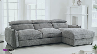 SAMINA Ecksofa aus grau meliertem Samt mit Aufbewahrungsbox - Rechtwinklig