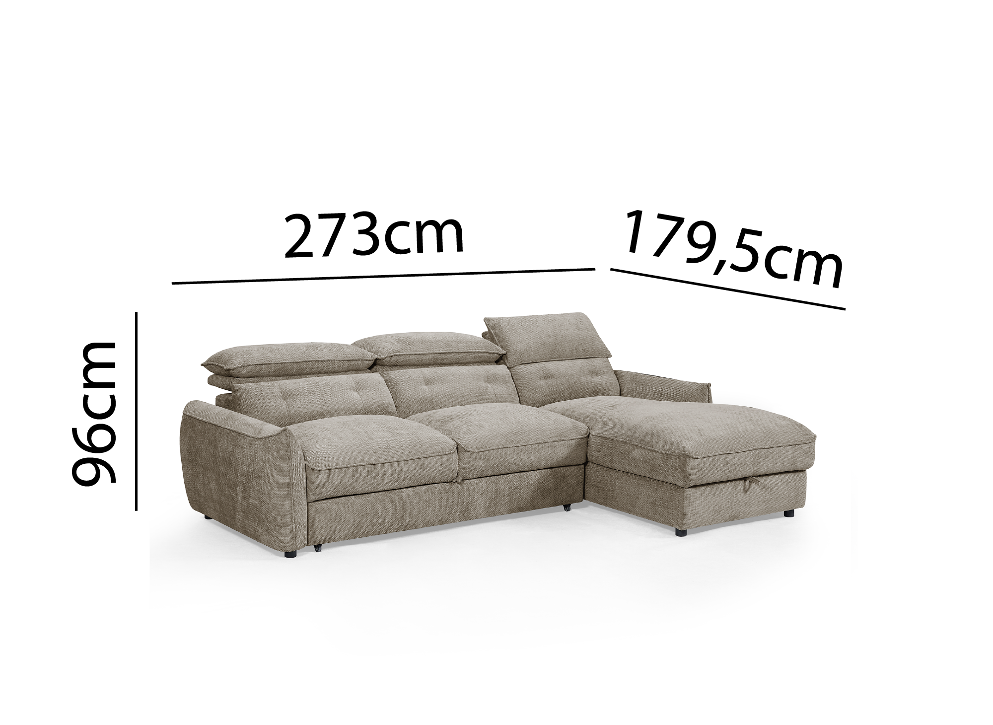 Dieses praktische und funktionale Sofa lässt sich dank seines einfach zu bedienenden Mechanismus im Handumdrehen in ein Bett verwandeln. Die Chaiselongue mit integriertem Staufach eignet sich ideal zum Verstauen von Bettdecken, Kissen, Überwürfen oder Bettwäsche.