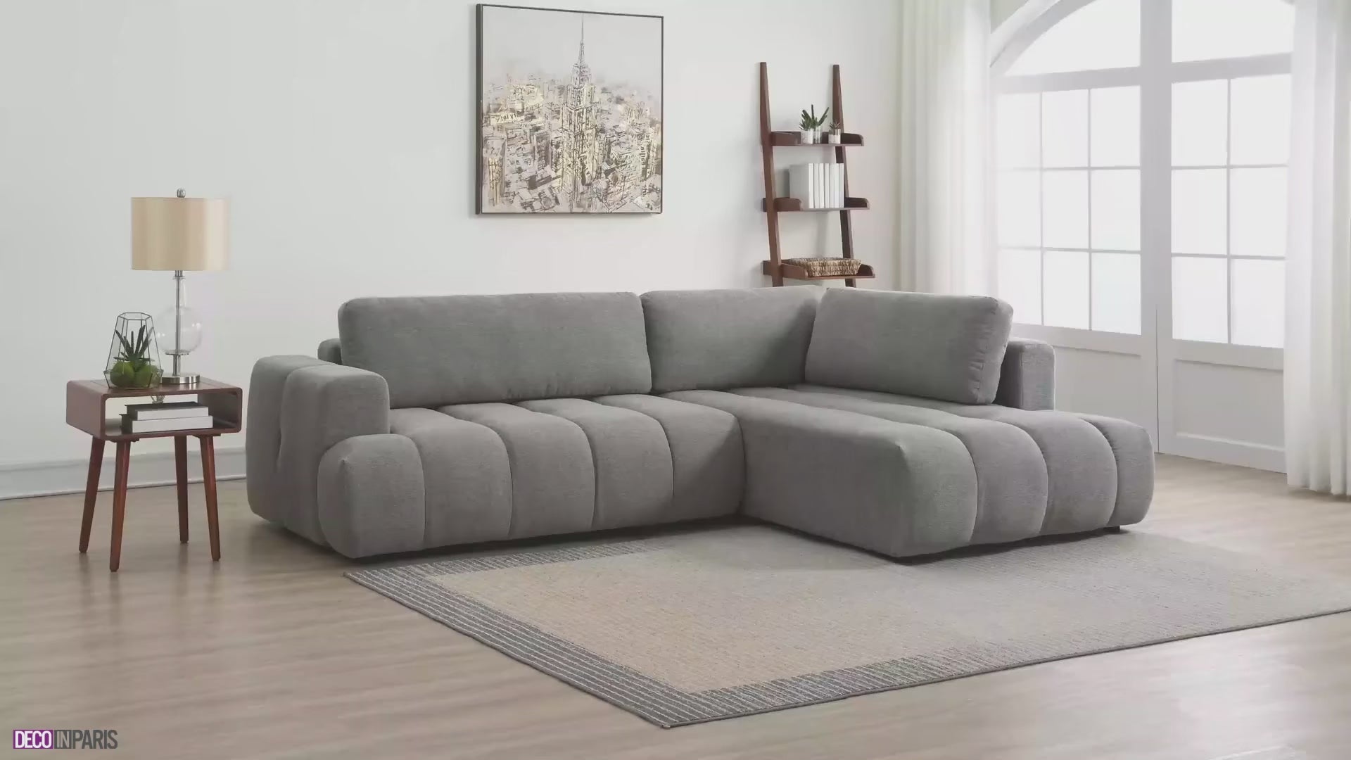 HAVEN Ecksofa aus grauem Stoff mit Stauraum – rechtwinklig