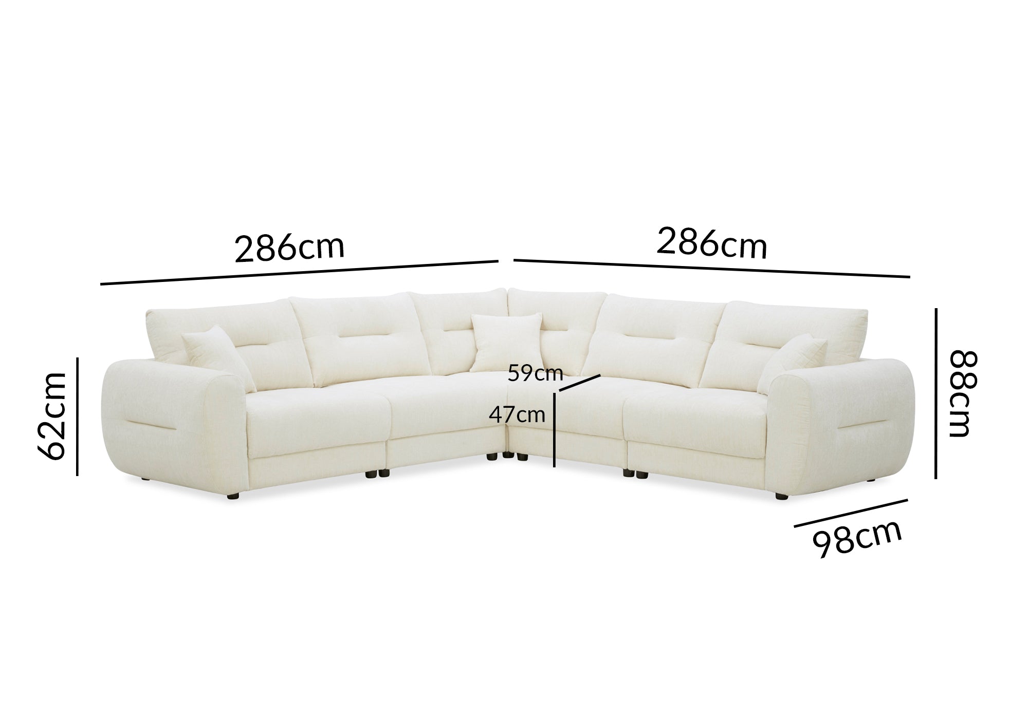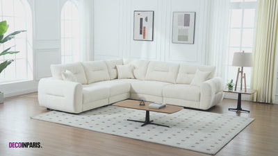 Dank seiner großzügigen Eckform bietet es viel Platz zum Entspannen, für gesellige Stunden mit Familie und Freunden oder einfach zum Genießen ruhiger Momente. Der weiche Sitz und die leicht gepolsterten Rückenlehnen sorgen für optimalen Komfort, während die abgerundeten Linien und die dicken Armlehnen den modernen und einladenden Look unterstreichen.