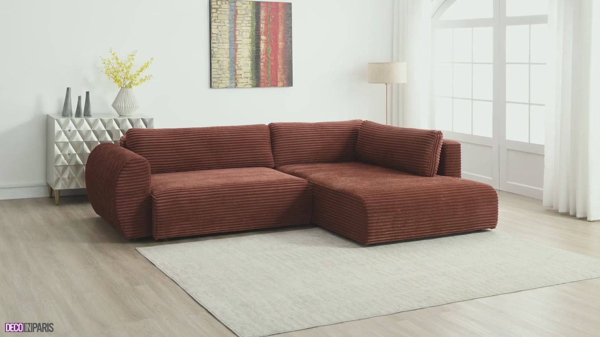 Möchten Sie Ihrem Zuhause eine gemütliche und zugleich elegante Atmosphäre verleihen? Verlieben Sie sich in das umbaubare Ecksofa TILDA mit Chaiselongue aus dickem Terrakotta-Cord.