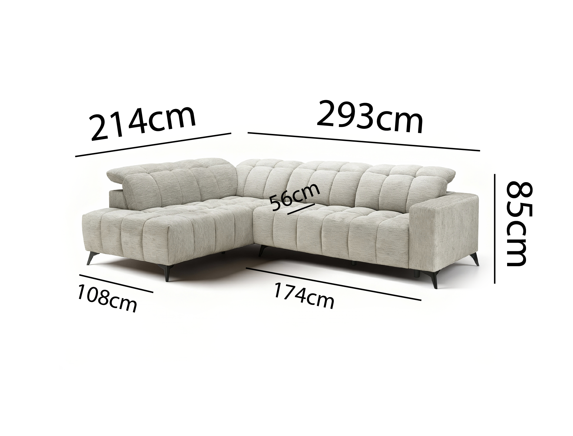 Das Sofa ALVAR steht auf schlanken schwarzen Metallbeinen und besticht trotz seiner großzügigen Abmessungen durch eine luftige, grafische Silhouette. Es ist die perfekte Wahl für alle, die ein modernes, modulares und entspannendes Ecksofa suchen, ohne Kompromisse beim Stil einzugehen.