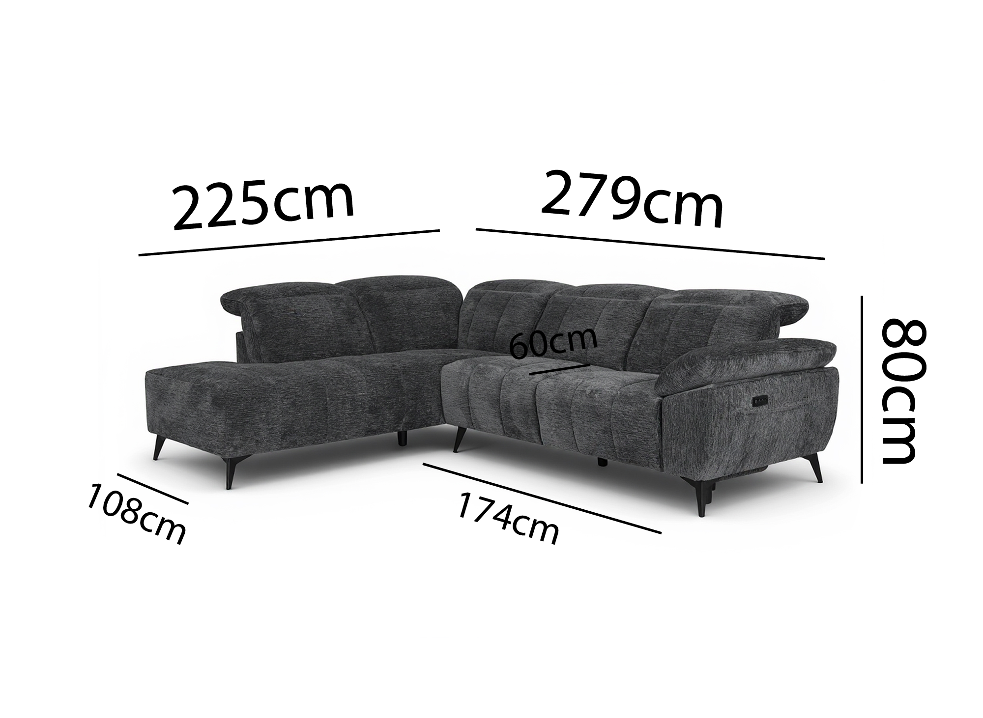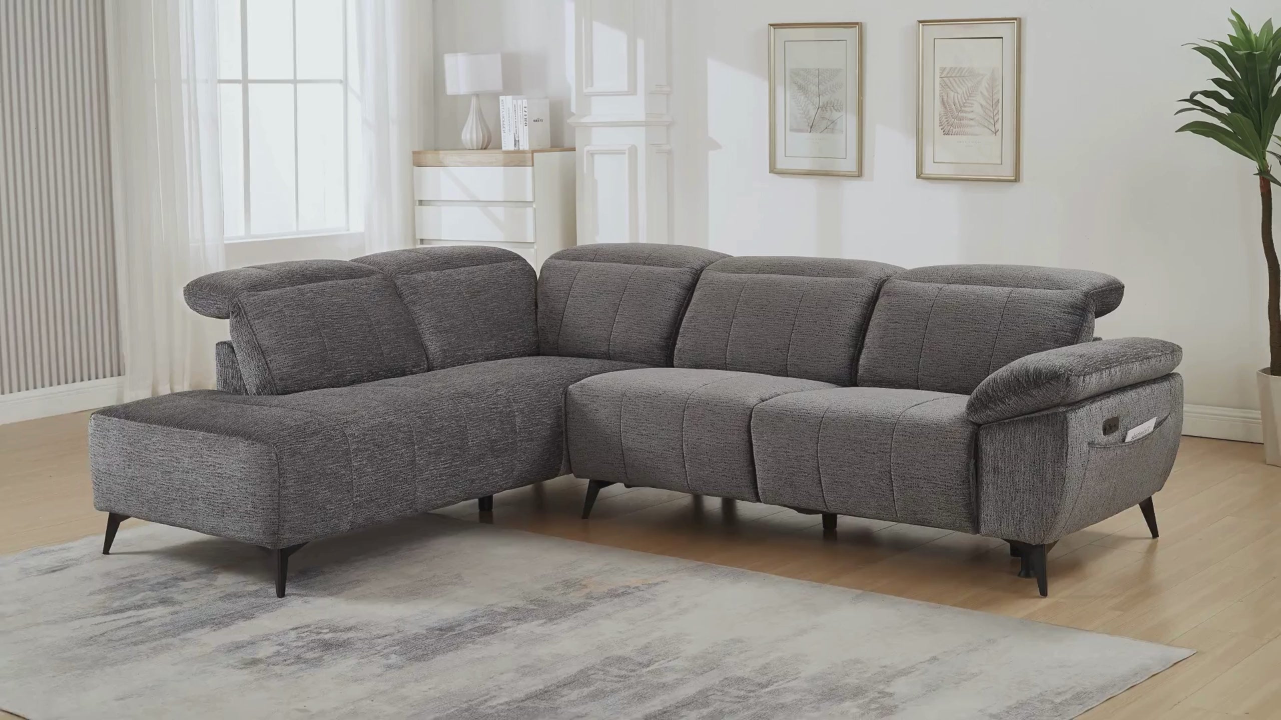 SOLINA Ecksofa mit elektrischer Verstellung aus grau meliertem Samt – Linke Ecke