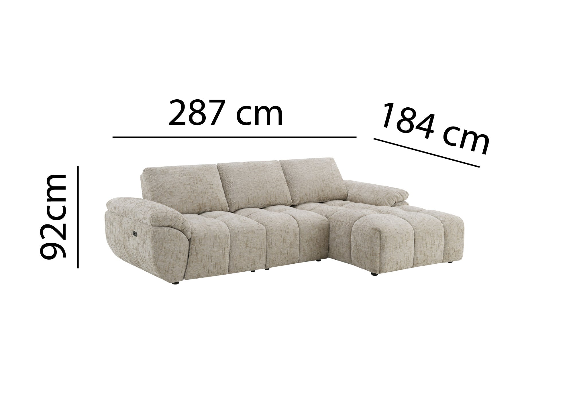 Der weiche, strapazierfähige und elegant melierte Samt verleiht diesem Sofa eine gemütliche Ausstrahlung und unterstreicht gleichzeitig seinen Designercharakter. Es passt sich mühelos Ihrem Wohnraum an und ist perfekt für entspannte Abende, gemütliche Momente oder die Unterhaltung in geselliger Atmosphäre. Dieses elektrisch verstellbare Ecksofa bietet Ihnen optimalen Komfort, ohne Kompromisse beim Stil einzugehen!