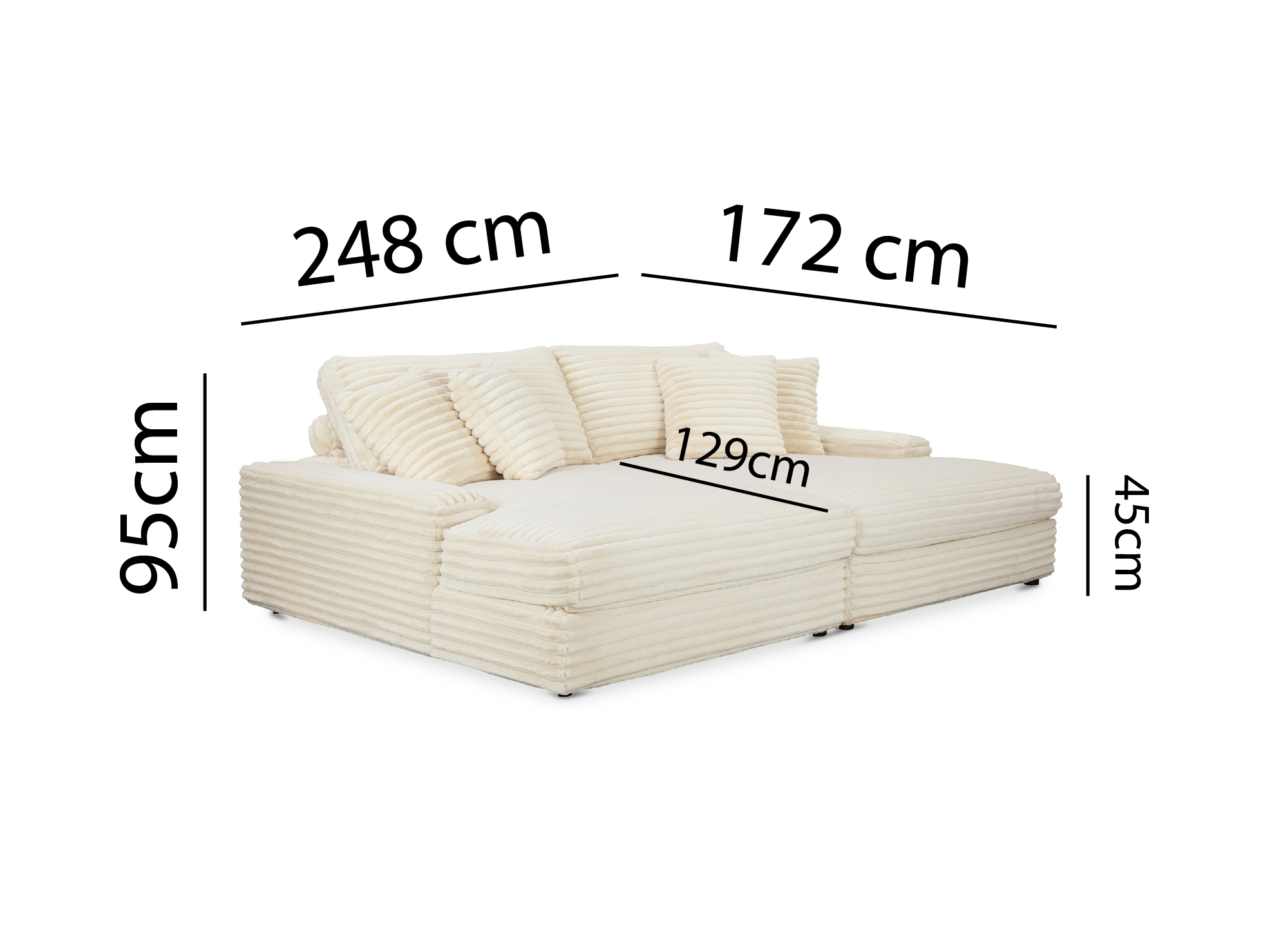 Maße: Breite 248 cm x Tiefe 172 cm x Höhe 89 cm. / Sitzhöhe: 46 cm