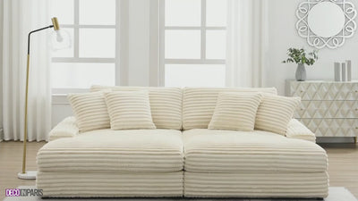 DAHO 2-Sitzer-Sofa mit gerader Chaiselongue in weichem, beigefarbenem Rippenstoff
