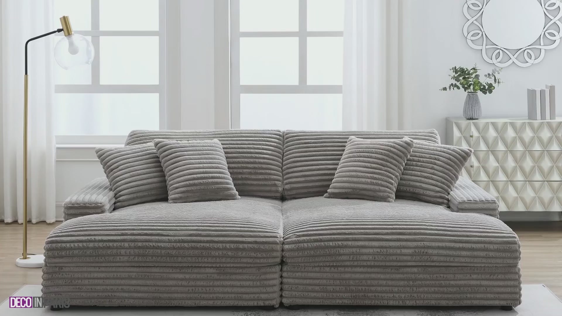 Entdecken Sie das 2-Sitzer-Chaiselongue-Sofa DAHO in weicher, grober grauer Rippung , eine ideale Lösung für kleine Räume.
