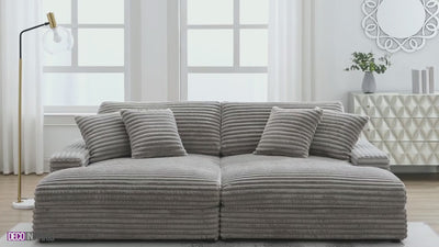 DAHO 2-Sitzer-Sofa mit gerader Chaiselongue in weichem, grauem Rippenstoff