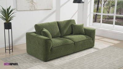 ABELIA 3-Sitzer-Sofa mit gerader Sitzfläche in olivgrünem, meliertem Samt