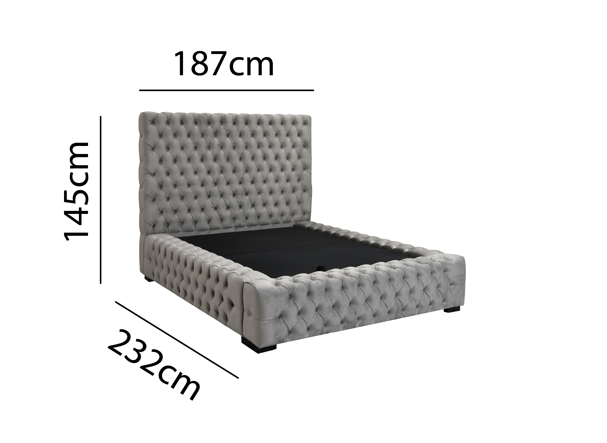 Unser Bett mit Stauraum aus getuftetem Samt wurde für Ihren Komfort entworfen und bietet Ihnen in Ihren Entspannungsmomenten ausreichend Halt. Der graue Samt mit seiner zeitlosen Farbe und dem weichen Griff macht dieses Bett zum Herzstück Ihrer Inneneinrichtung.