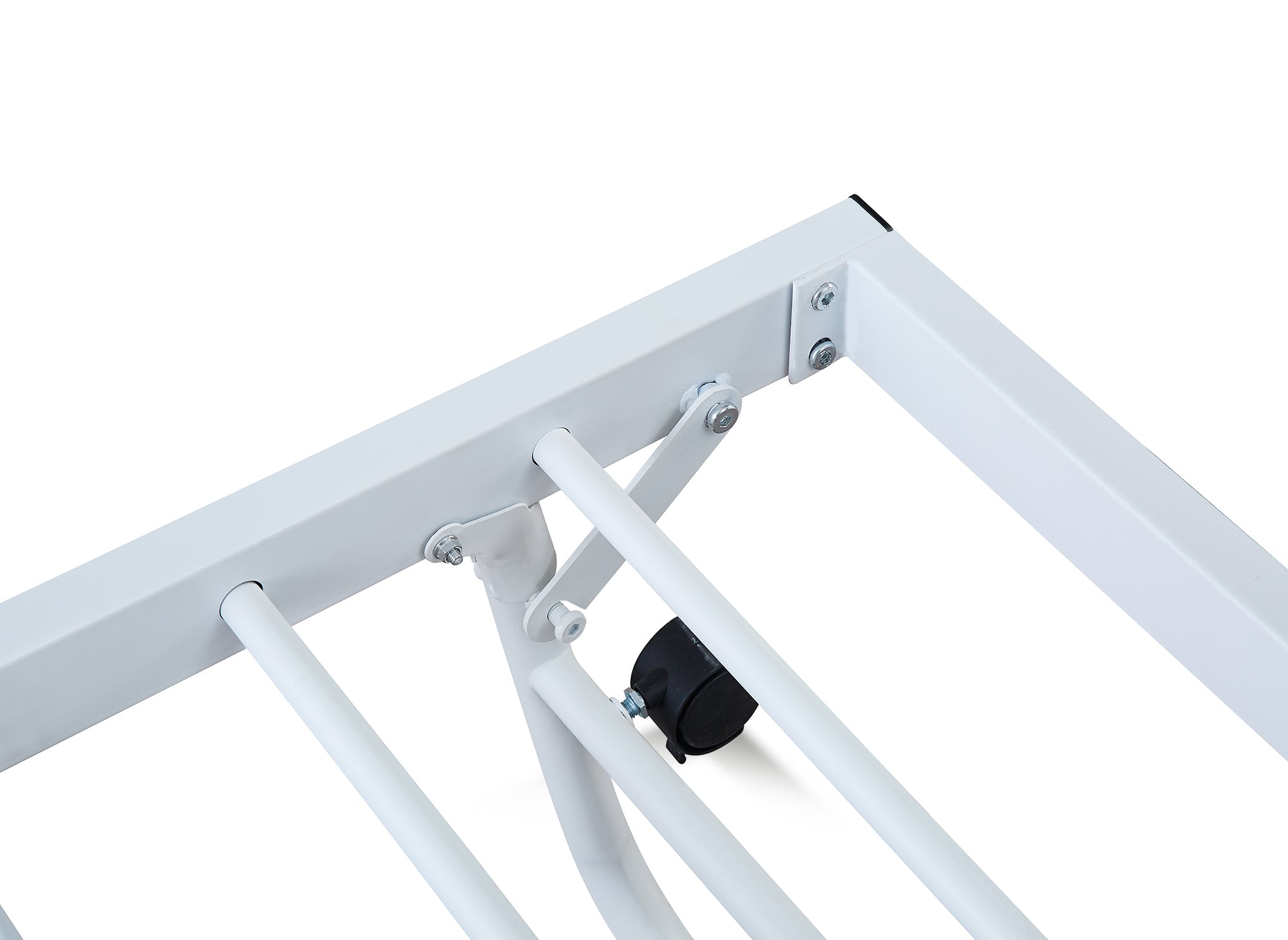 Unser minimalistisches Bett wird Sie mit seinem weißen Metalldesign verführen, einer zeitlosen Farbe, die sich perfekt in verschiedene Inneneinrichtungen einfügt.
