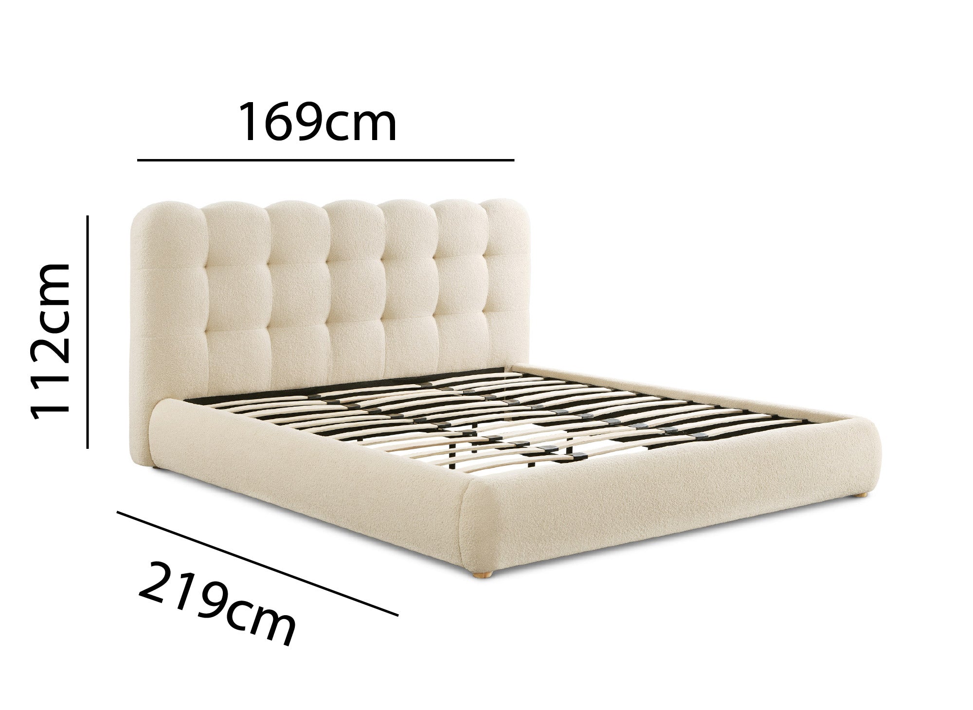 Verwandeln Sie Ihr Schlafzimmer mit diesem 140 x 190 cm großen Doppelbett aus beigem Bouclé-Stoff BISCUIT , das Komfort, Eleganz und Funktionalität vereint.