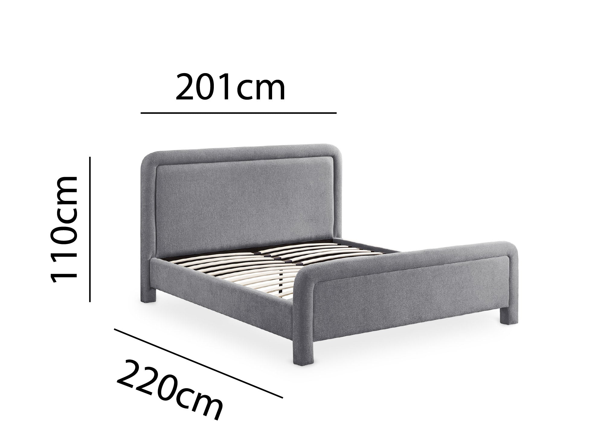 Das Kopfteil mit seinen klaren, abgerundeten Linien verleiht dem Gesamtbild eine raffinierte, moderne Note. Mit seinem minimalistischen Stil fügt sich dieses Bett problemlos in jede Inneneinrichtung ein, egal ob modern oder eher klassisch.