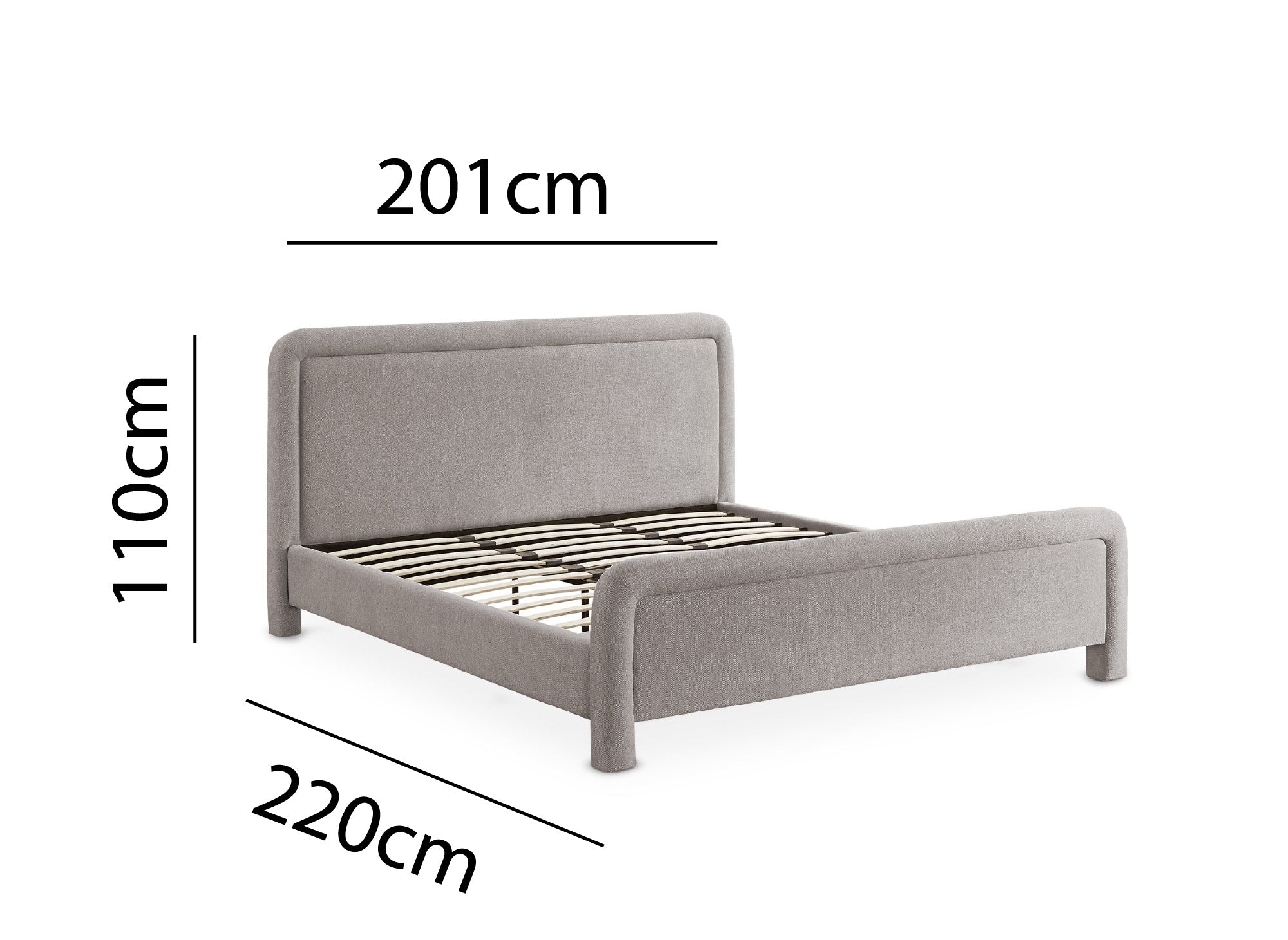 Das Doppelbett ANELA verspricht dank seiner weichen Stoffpolsterung außergewöhnlichen Komfort, der zum Entspannen und Wohlfühlen einlädt. Der beruhigende Taupe-Farbton schafft eine warme und harmonische Atmosphäre, ideal für erholsame Nächte.