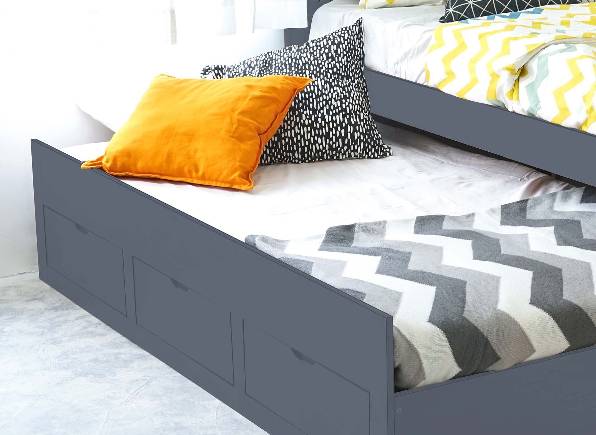 ENORA Ausziehbett aus grauem Holz mit Schubladen 90 x 190 cm