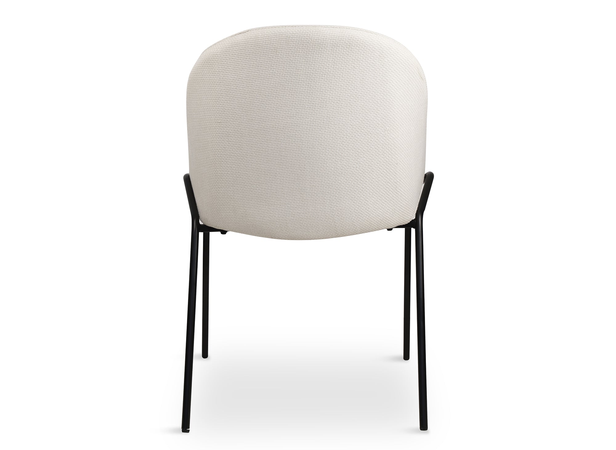 Mit seinem Retro-Chic-Stil passt der Stuhl ZAYA aus beigem Stoff perfekt in moderne und klassische Innenräume. Sie werden seine weiche, abgerundete Form und die umhüllende, weiche Sitzfläche lieben.