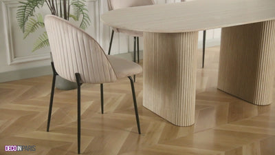2er-Set Designerstühle aus beigem Samt mit schwarzen Beinen ARABEL