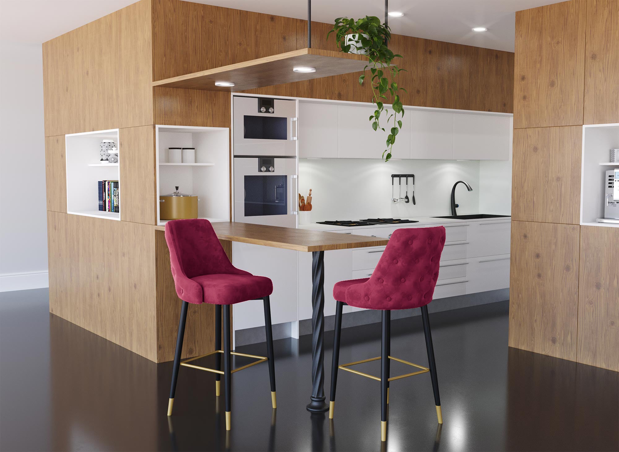 Möchten Sie ein Interieur mit Tiefe? Um Ihr Esszimmer, Ihren Küchenbereich, Ihr Schlafzimmer oder Ihr Büro zu verschönern, entscheiden Sie sich für unseren gepolsterten Hocker aus burgunderrotem Samt DORINA .