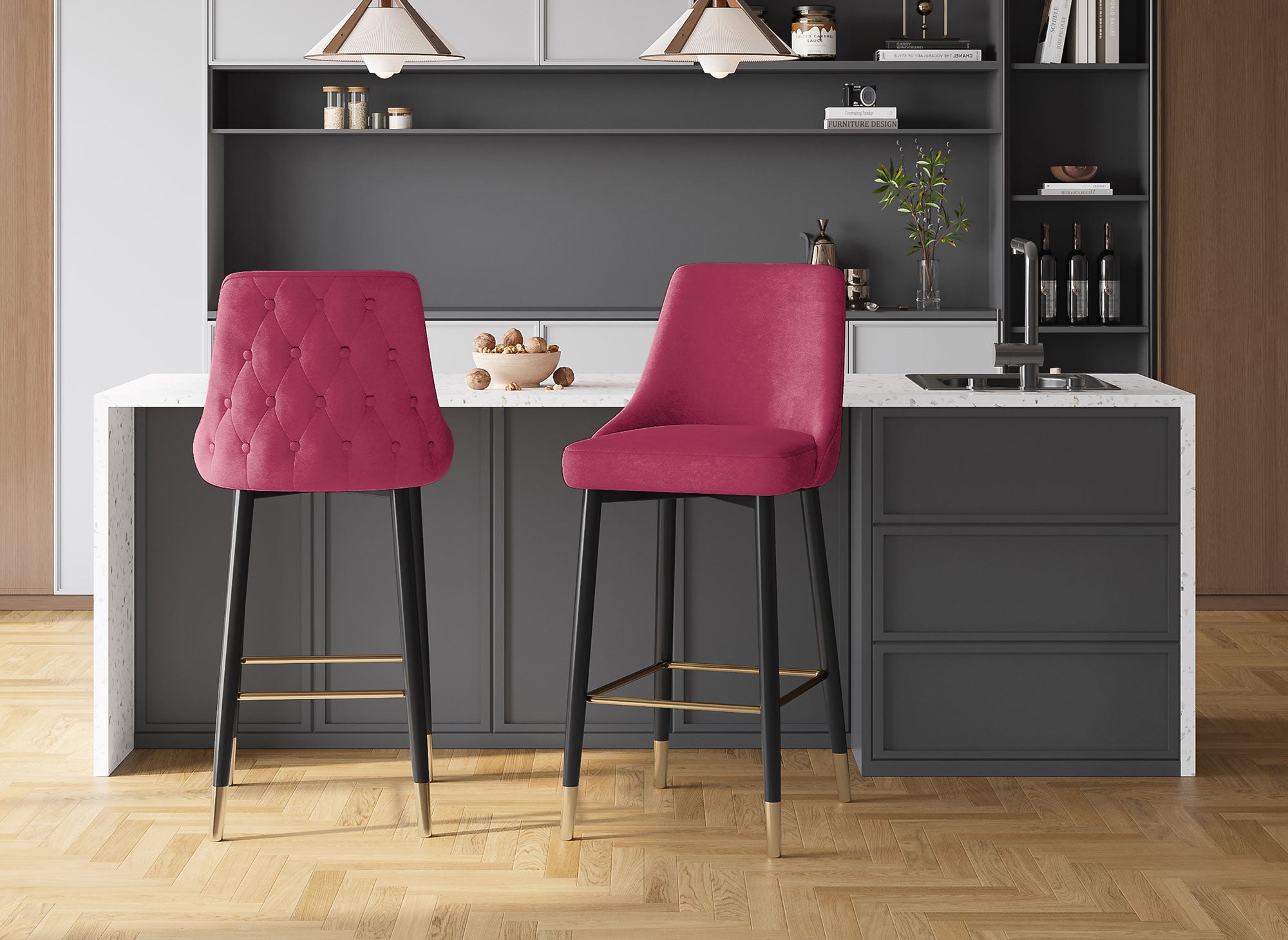 2er-Set DORINA Barhocker aus burgunderrotem Samt