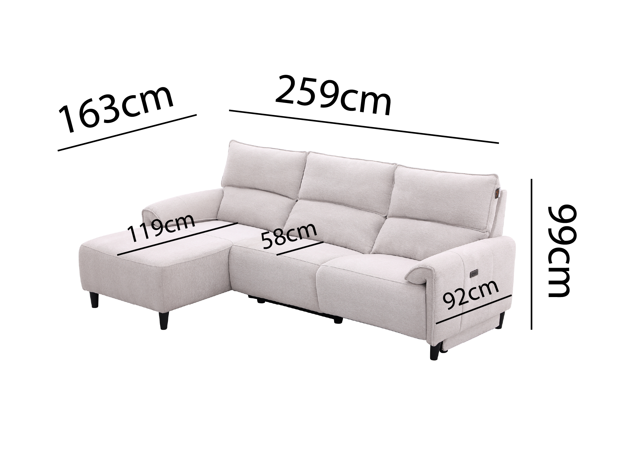 Gönnen Sie sich die perfekte Kombination aus Komfort und modernem Stil mit diesem elektrisch verstellbaren Ecksofa. Sein klares Design und die Farbgebung bringen Helligkeit und Eleganz in Ihr Wohnzimmer und fügen sich harmonisch in jeden Einrichtungsstil ein.