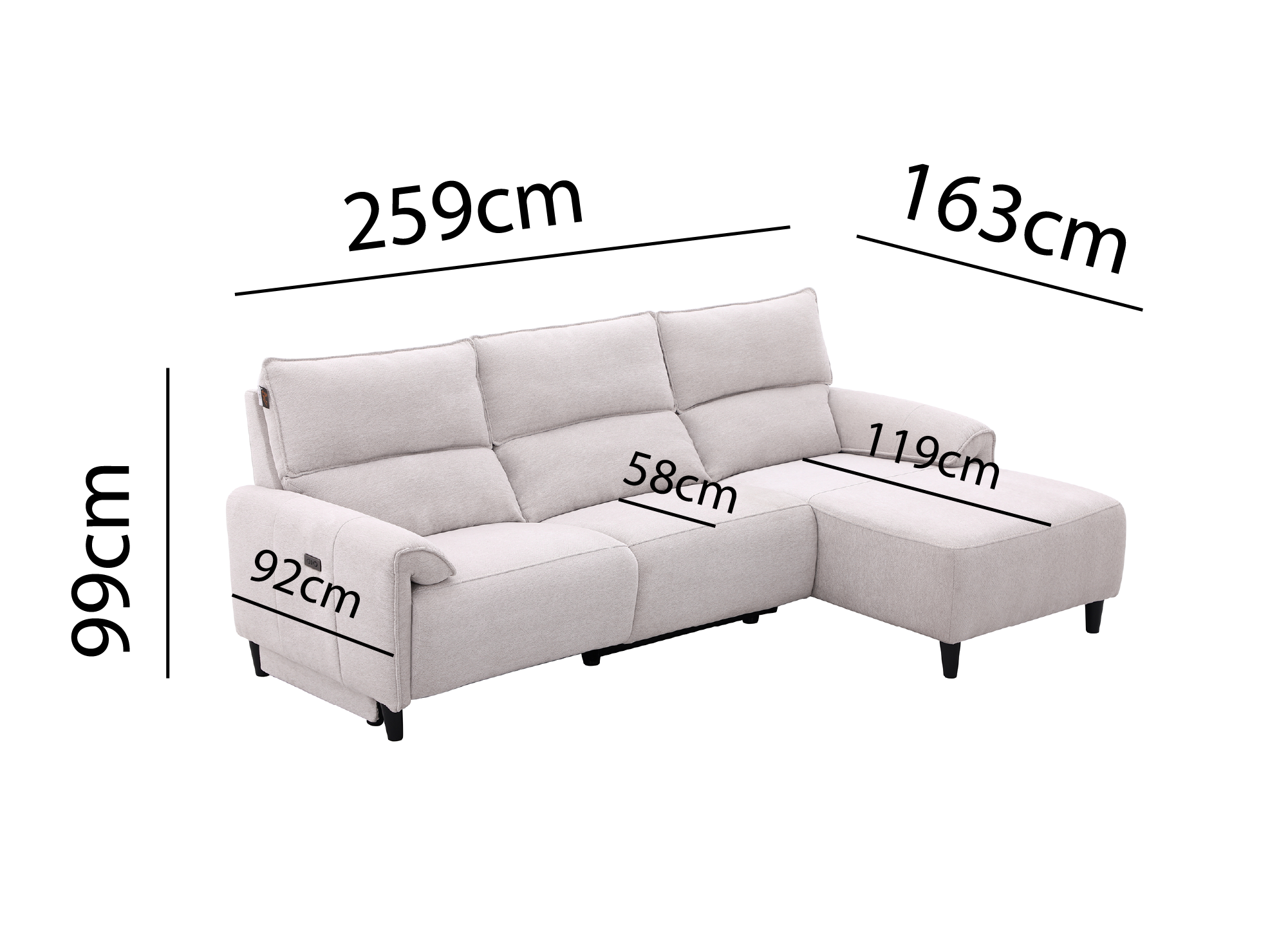 LUDMILA elektrisches Ecksofa mit Relaxfunktion in beigem Stoff - Rechte Ecke