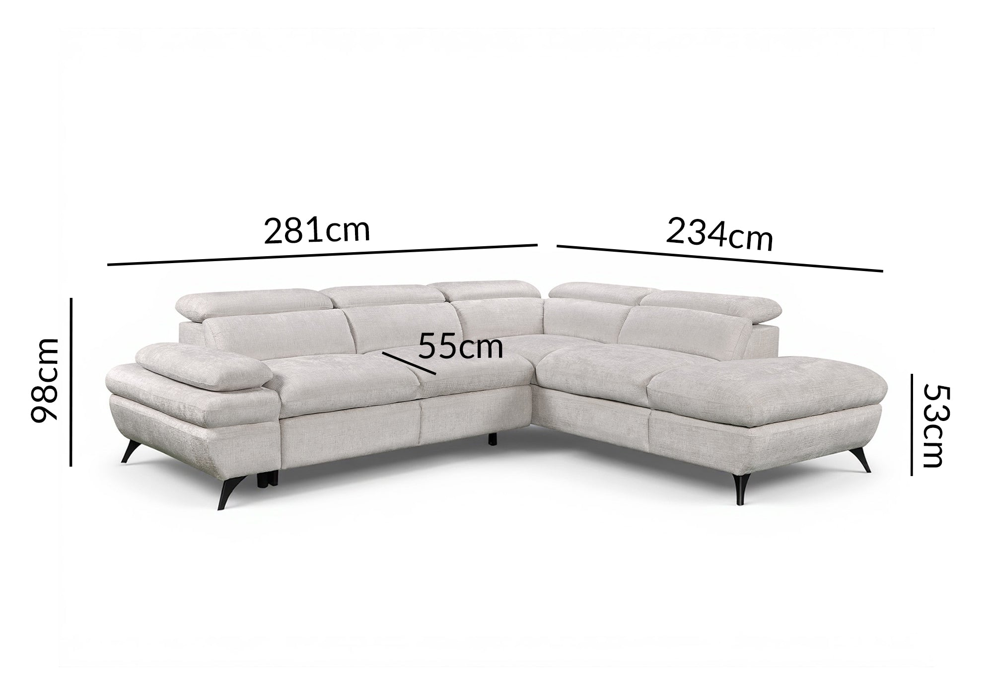 Mit wenigen Handgriffen lässt sich dieses Sofa in ein geräumiges Gästebett verwandeln, ideal für die Unterbringung von Familie oder Freunden. Die Chaiselongue mit integriertem Stauraum bietet praktischen Platz zum Verstauen von Decken, Kissen oder Überwürfen.