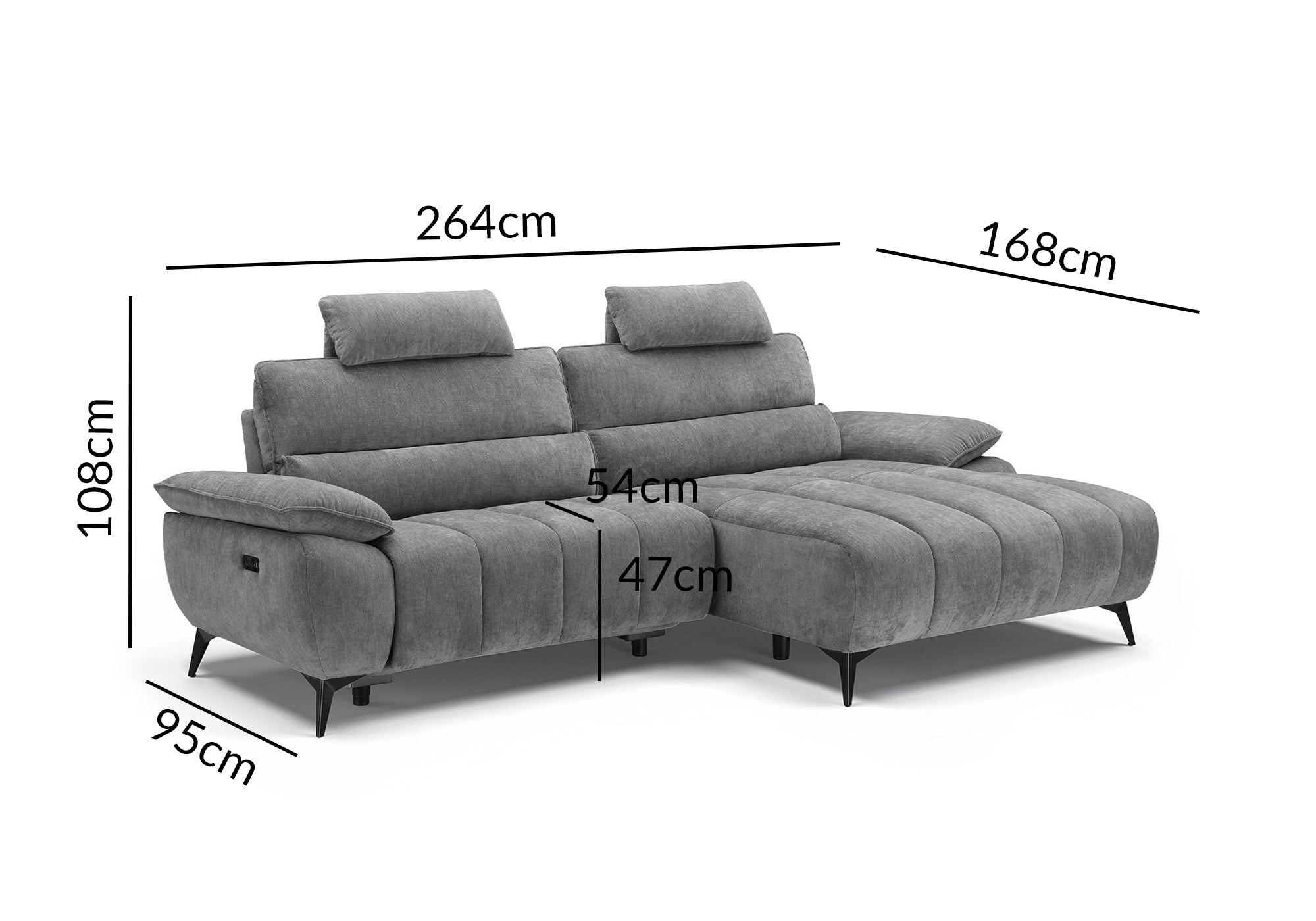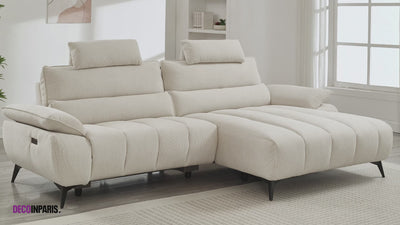 LYANA elektrisches Ecksofa mit Relaxfunktion in meliertem grauem Samt – rechte Ecke