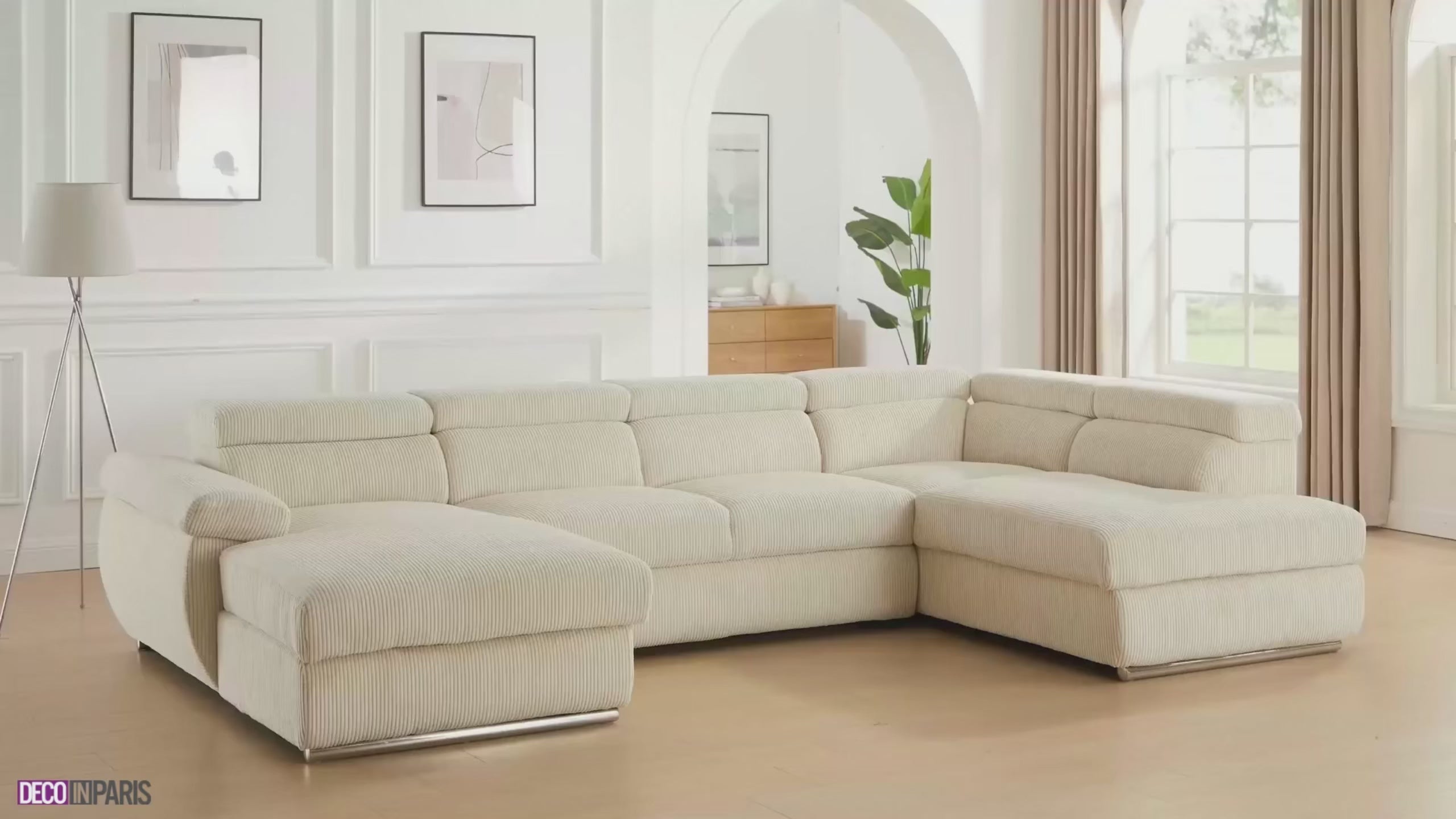 Mit seiner eleganten Optik passt das umbaubare Ecksofa MARIANO in jedes Interieur. Sein entschieden moderner Look kombiniert mit der trendigen, dicken Cordpolsterung sorgt für einen Wohnraum voller Weichheit. Seine großzügigen, abgerundeten Kurven und die Finesse des silberverchromten Metallgestells verleihen Ihrem Wohnzimmer einen Hauch von Charme und Authentizität.