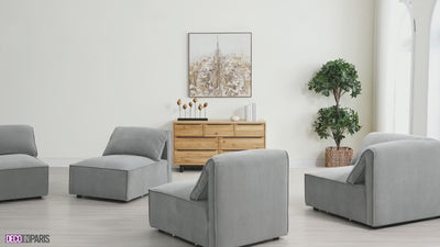 Jedes Detail dieses modularen Ecksofas wurde für ein entspannendes Erlebnis konzipiert. Die sanft abgerundeten Armlehnen und die großzügige Sitztiefe laden zum Zurücklehnen und Genießen geselliger Momente ein. Ob Sie Freunde unterhalten, einen Familienfilmabend genießen oder einfach nach einem langen Tag entspannen – dieses Sofa wird all Ihre Erwartungen erfüllen.