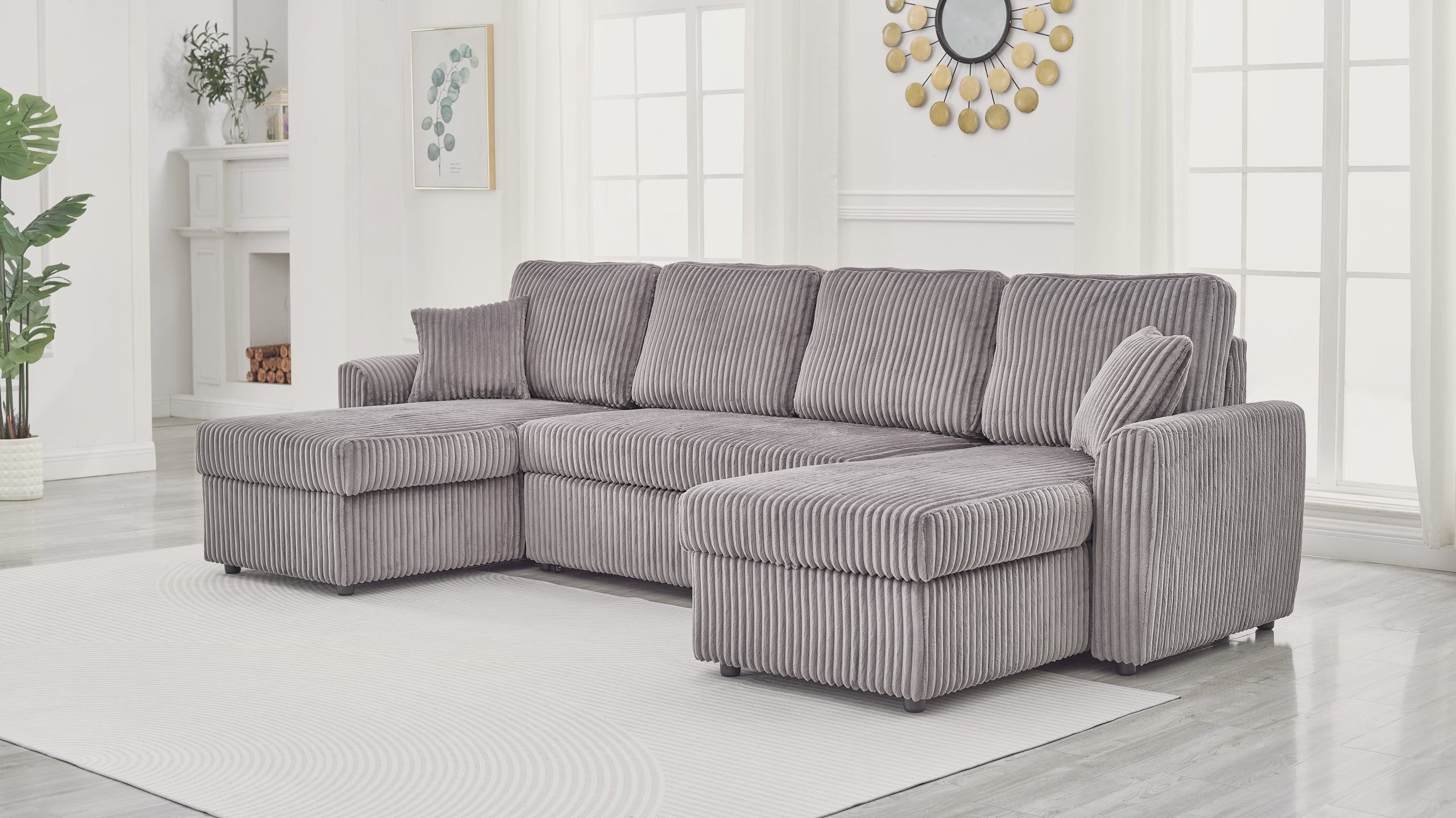 ADRYEN Panorama-Schlafsofa mit Staufächern aus dickem grauem Cord
