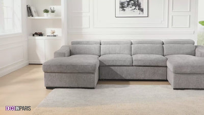 Das VELORA Sofa ist die perfekte Wahl für alle, die ein stilvolles, funktionales und vielseitiges Sofa suchen. Sein U-förmiges Design bietet reichlich Sitzgelegenheiten und maximiert gleichzeitig den Platz dank integrierter Staufächer. Verleihen Sie Ihrem Wohnzimmer mit dem VELORA Panoramasofa einen einladenden Raum zum Entspannen und Unterhalten. Es vereint Komfort, praktischen Stauraum und zeitloses Design.