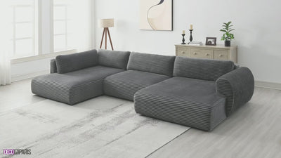 TILDA Graues Cord-Panoramasofa mit Stauraum – Linke Ecke