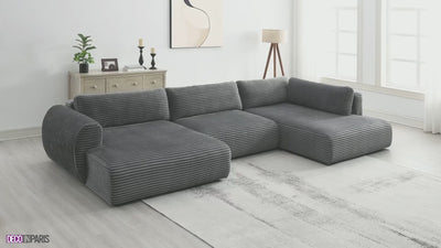 TILDA Graues Cord-Panoramasofa mit Stauraum – rechtwinklig