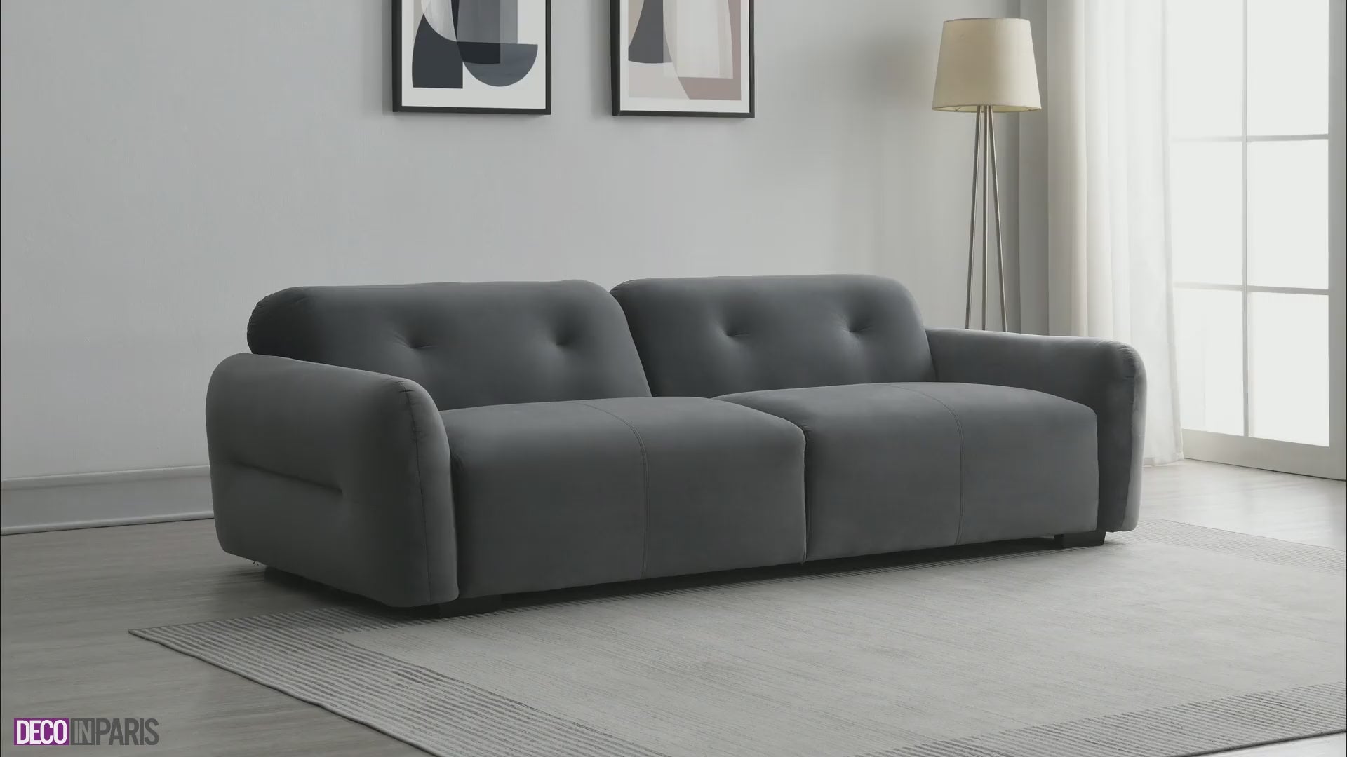 Dank der Raffinesse und des Komforts seiner Formen wird unser 3-Sitzer-Sofa PICASSO aus grauem Samt all Ihre Erwartungen erfüllen.