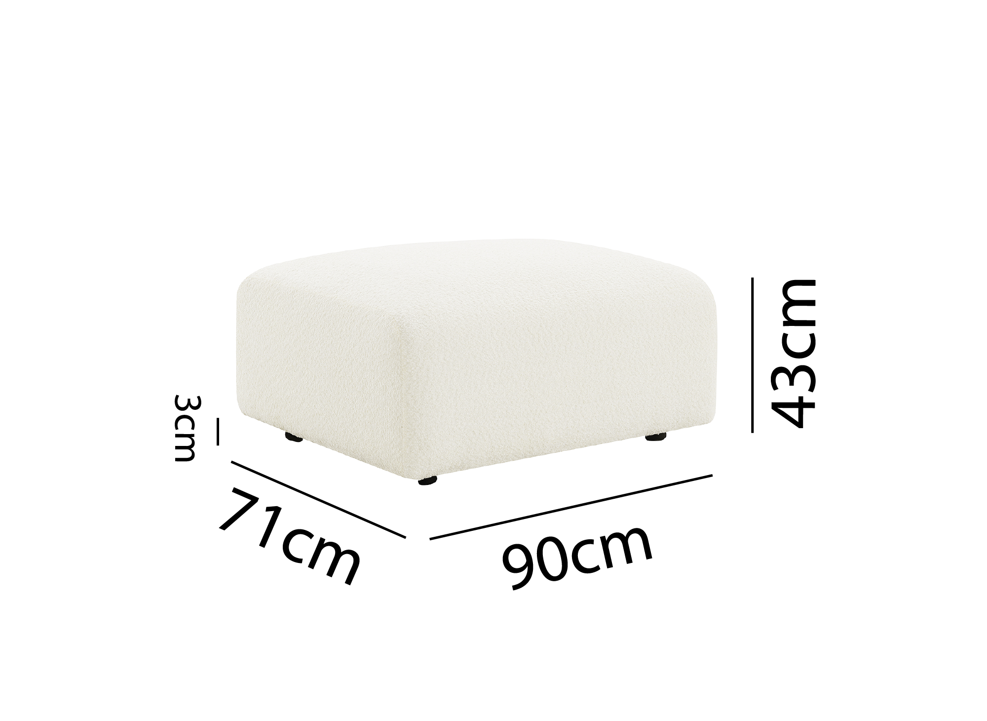 Der weiche und strapazierfähige Bezug aus weißem Bouclé-Stoff sorgt für eine angenehme Haptik und eine warme Optik. Mit seinen abgerundeten Formen und dem zeitgenössischen Stil fügt er sich problemlos in eine Vielzahl von Einrichtungsstilen ein, von modern bis skandinavisch, und ergänzt Ihr NYLA-Sofa harmonisch.