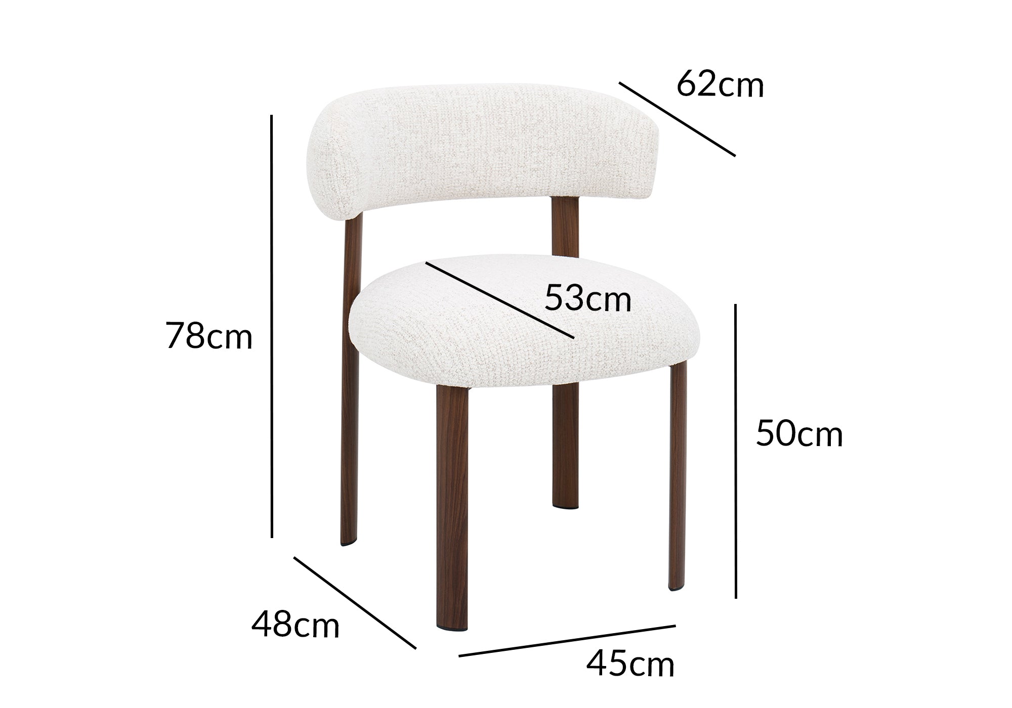 Der Stuhl LOUISA besticht durch sein elegantes Design und seinen einladenden Komfort. Sein ecrufarbener, gewebter Samtbezug , der sich weich anfühlt und gleichzeitig strapazierfähig ist, verleiht Ihrem Interieur eine warme und edle Note. Die geschwungene Rückenlehne passt sich der Rückenform an und bietet bequemen Halt, während die großzügig gepolsterte Sitzfläche dauerhaften Komfort garantiert – ob bei einem geselligen Essen oder einem langen Gespräch am Tisch.