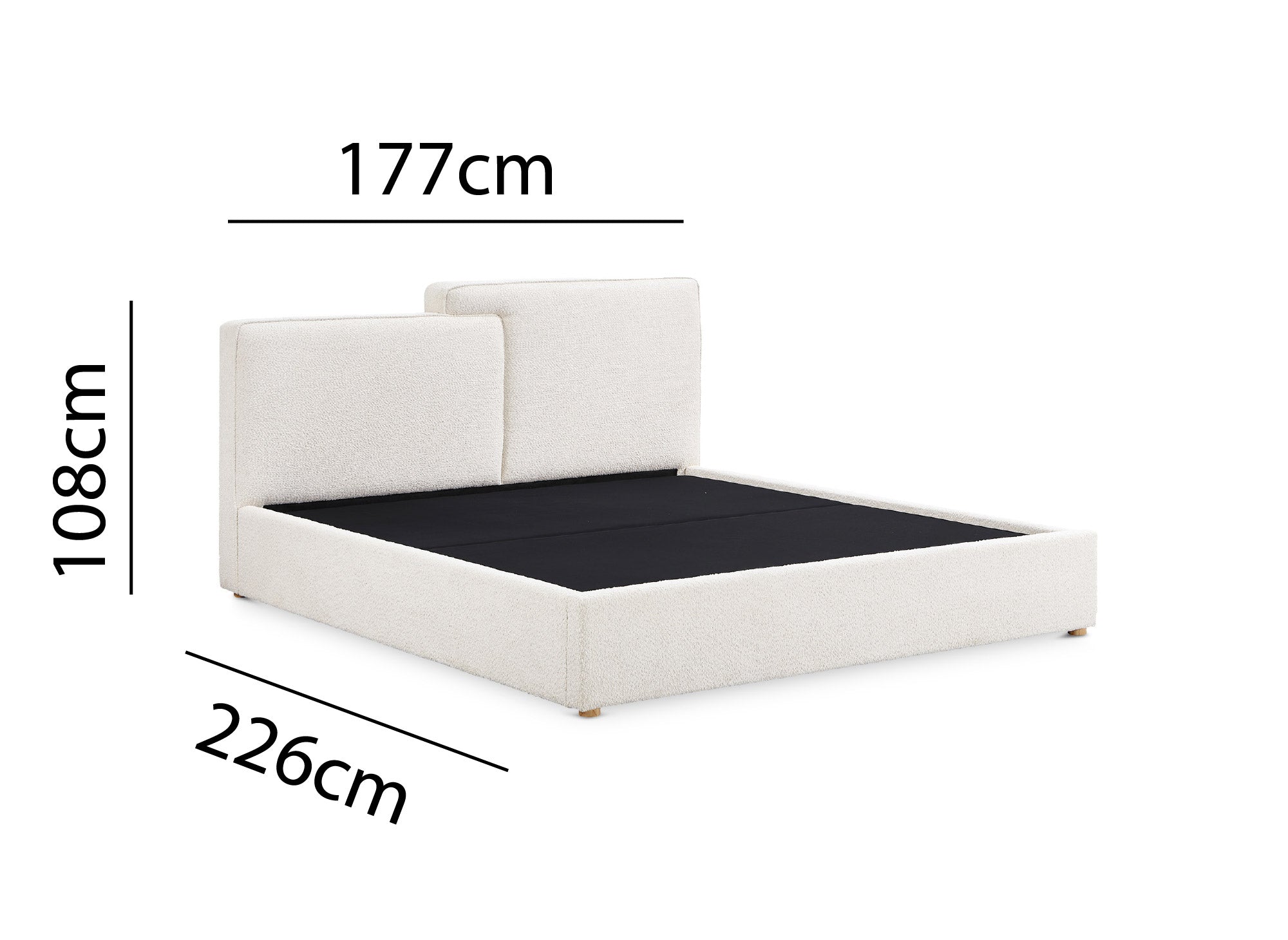 Das asymmetrische Kopfteildesign verleiht einen Hauch von Originalität und Stil, während der gepolsterte Rahmen den Eindruck von Komfort und Modernität verstärkt.
